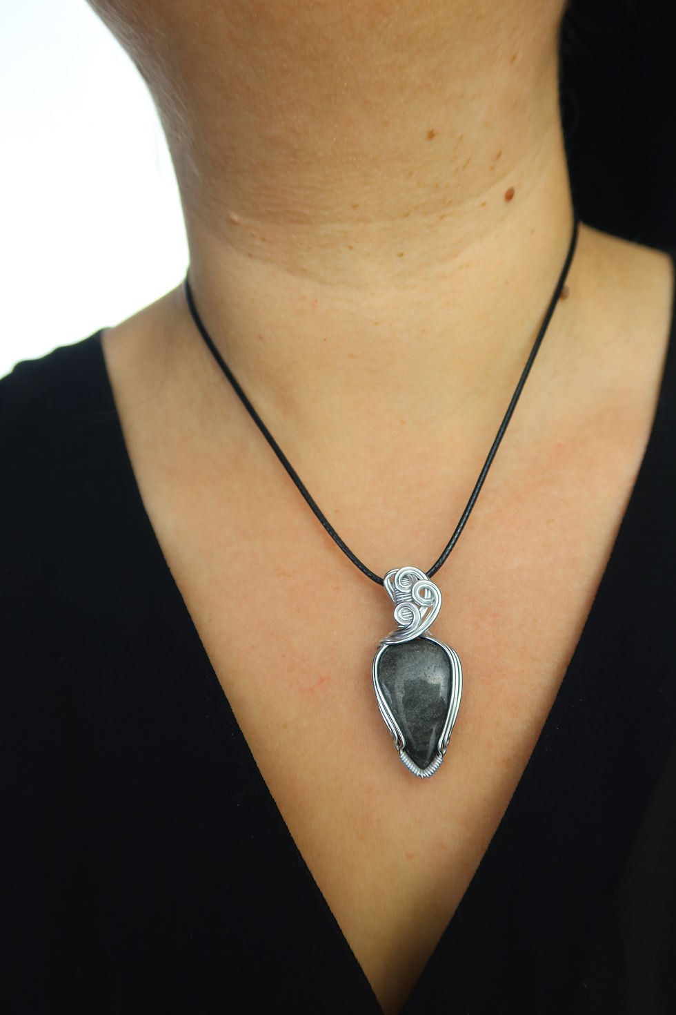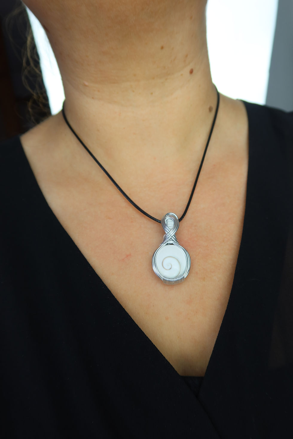 Les pendentifs sont des bijoux faits main à base de pierres naturelles en utilisant la technique du Wire Wrapping. Les matériaux utilisés sont l'aluminium, le cuivre ou l'acier inoxydable.